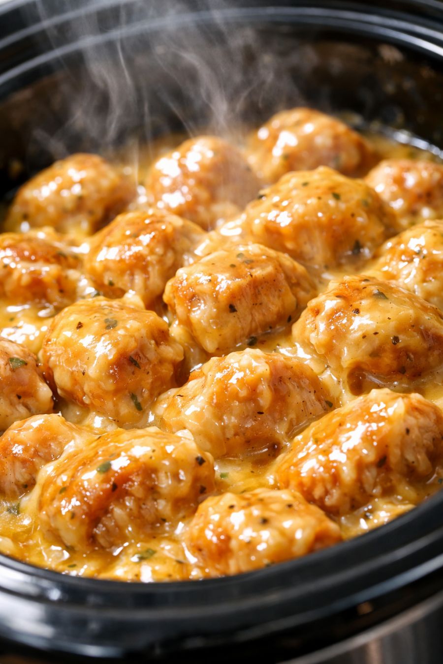 Lightly grease the inside of your slow cooker crock with a bit of oil or nonstick spray to help keep the creamy sauce from sticking.