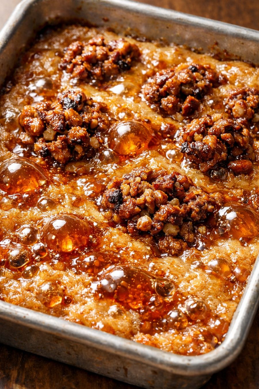 Serve these caramelized clusters at room temperature, sliced into bars or broken into rustic shards right from the metal pan. They’re lovely on their own with coffee or tea, but feel extra special with a scoop of vanilla ice cream or a dollop of whipped cream that melts into all the caramel pockets. For a make-ahead dessert tray, pair them with fresh berries or sliced strawberries for a little brightness. If you’re serving a bigger crowd, set the pan out family-style so everyone can break off their favorite chewy–crunchy corner piece.