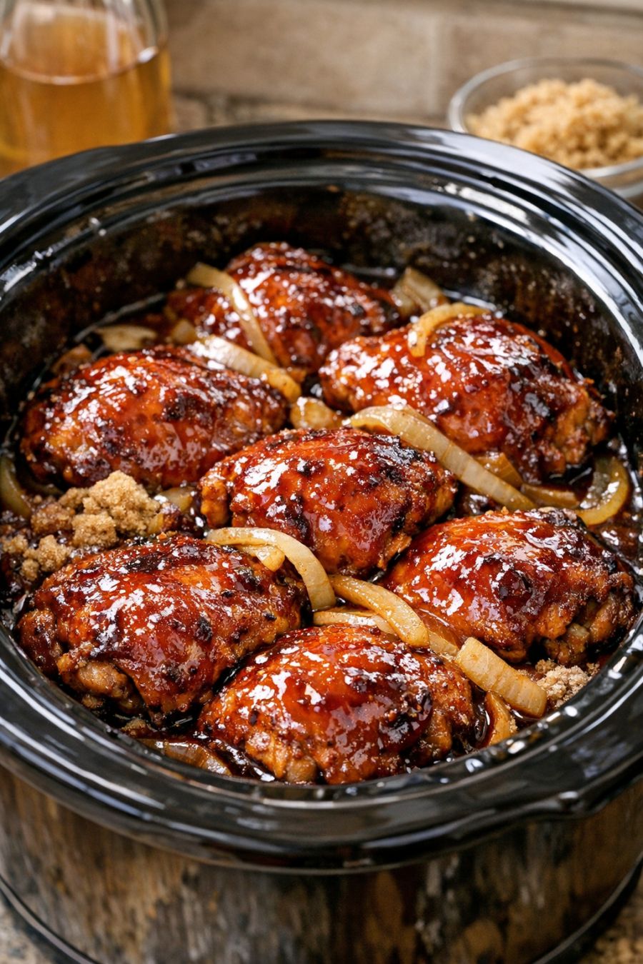 This slow cooker 4-ingredient Amish-style BBQ chicken is the kind of set-it-and-forget-it dinner that fits right into a busy weeknight. It takes its cue from simple Amish country cooking, where pantry staples and long, gentle cooking do most of the work. Here, bottled BBQ sauce teams up with three humble ingredients—brown sugar, apple cider vinegar, and a touch of yellow mustard—to create a tangy-sweet glaze that soaks into tender chicken thighs. You literally pour everything over the chicken in the slow cooker, walk away, and come back to a crave-worthy dinner you’ll want on repeat.