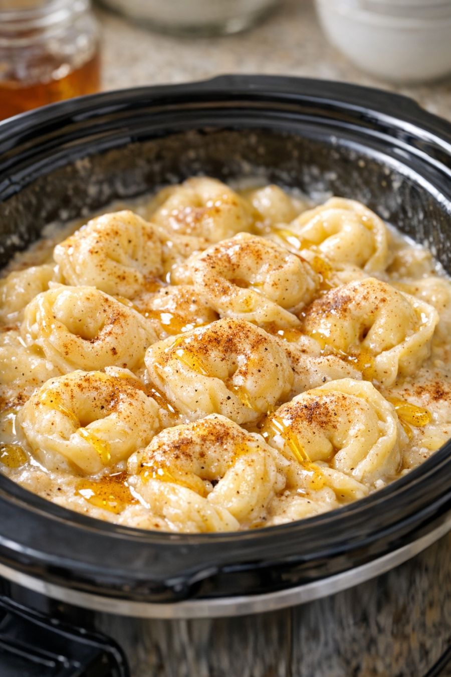 Slow Cooker Sweet Cheese Tortellini Dessert