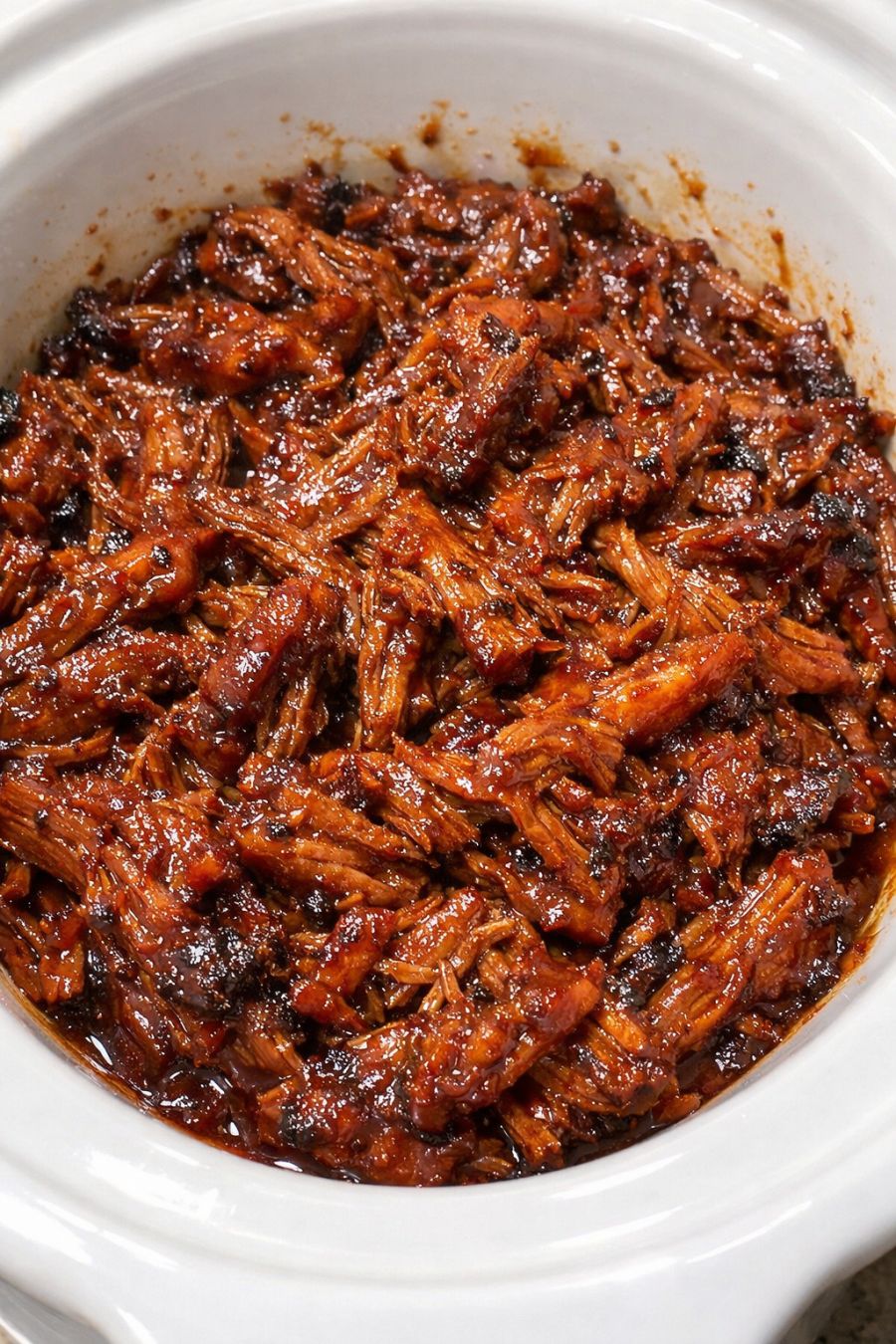 Return the shredded beef to the slow cooker and stir it into the remaining sauce until every strand is coated and glossy. If the mixture seems a little dry, add a splash more barbecue sauce and stir again. If it seems too thin, leave the lid off and cook on HIGH for 15–20 minutes, stirring occasionally, until the sauce thickens and clings to the beef.
