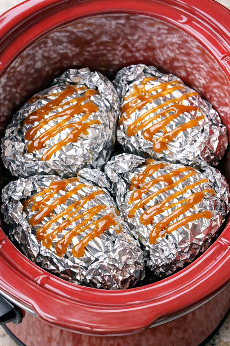 Arrange the sealed foil packets in a single layer in the bottom of the slow cooker. If your slow cooker is small and you need a second layer, place it gently on top, staggering the packets so they’re not directly stacked if possible. Do not add water; the moisture will come from the dough and trapped steam.