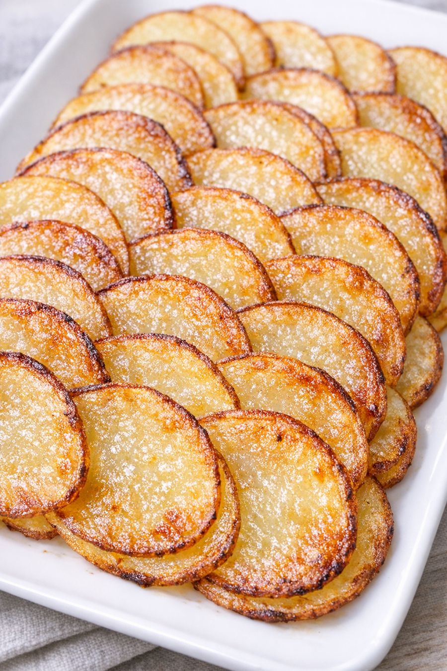 Place the potato slices in a large bowl. Drizzle with the olive oil and sprinkle with 1 teaspoon of the kosher salt. Toss gently with your hands to coat every slice lightly in oil—this is what helps them brown and crisp instead of steam.