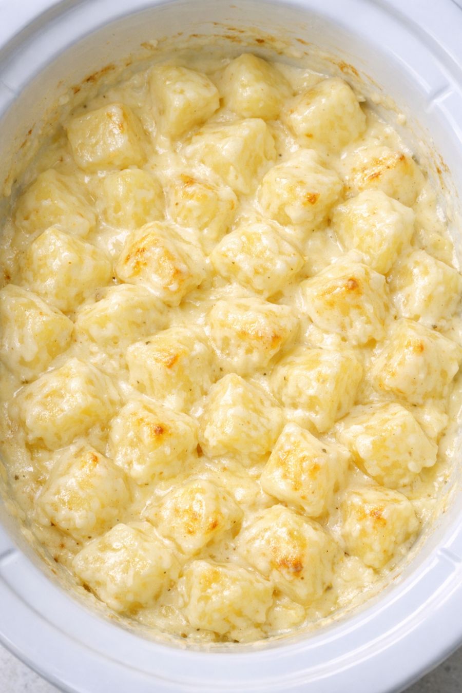 Serve the creamed potatoes straight from the slow cooker on the warm setting, making sure each spoonful has plenty of those glossy, creamy edges.