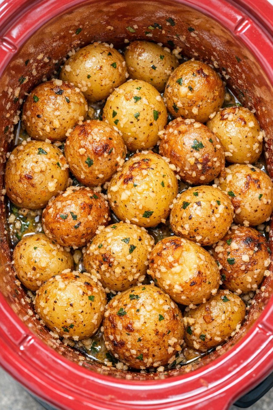 Rinse the small whole potatoes under cool water and scrub off any visible dirt. Pat them very dry with a clean towel so they can soak up the butter and get those slightly crispy edges in the slow cooker.