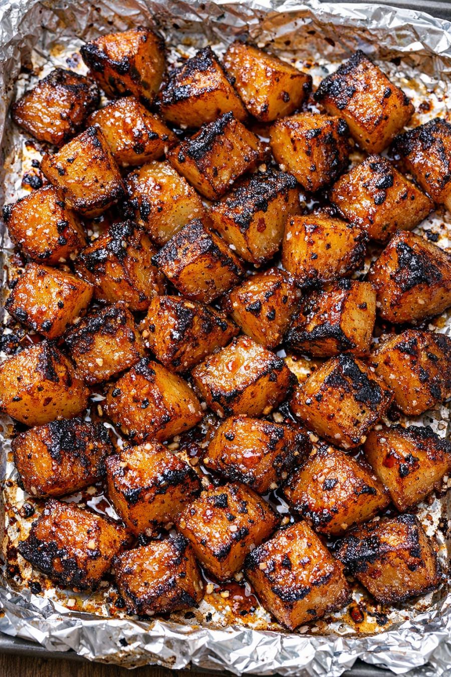 Preheat your oven to 425°F (220°C). Line a large baking sheet with aluminum foil for easy cleanup, and lightly crinkle the foil so the potatoes have little ridges to rest on. This helps them crisp up instead of steaming.