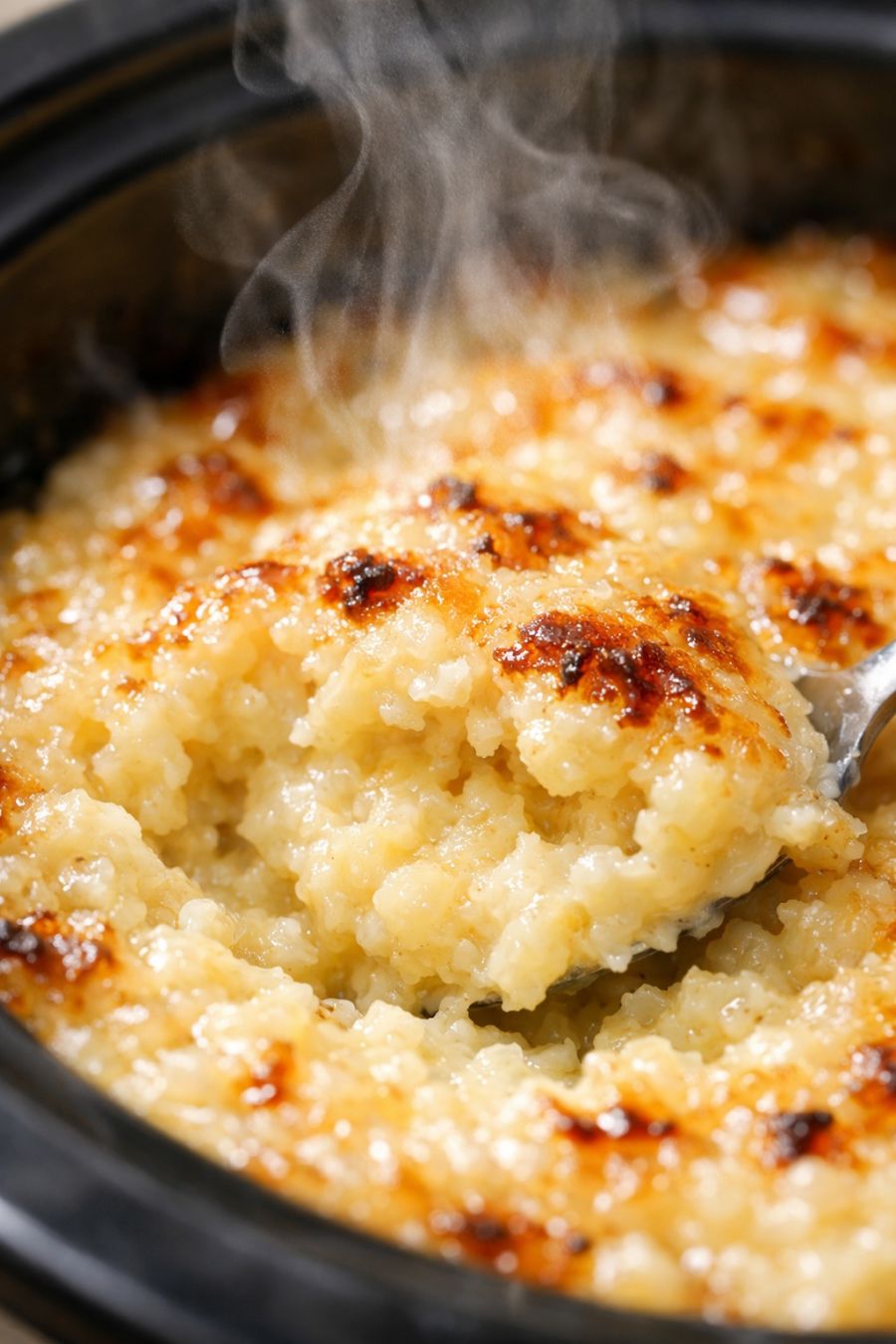 Cover the slow cooker with the lid and cook on LOW for 6 to 7 hours, or on HIGH for 3 to 4 hours, until the potatoes are very tender when pierced with a fork and the edges touching the sides and bottom of the crock are turning pale golden with some deeper amber spots.
