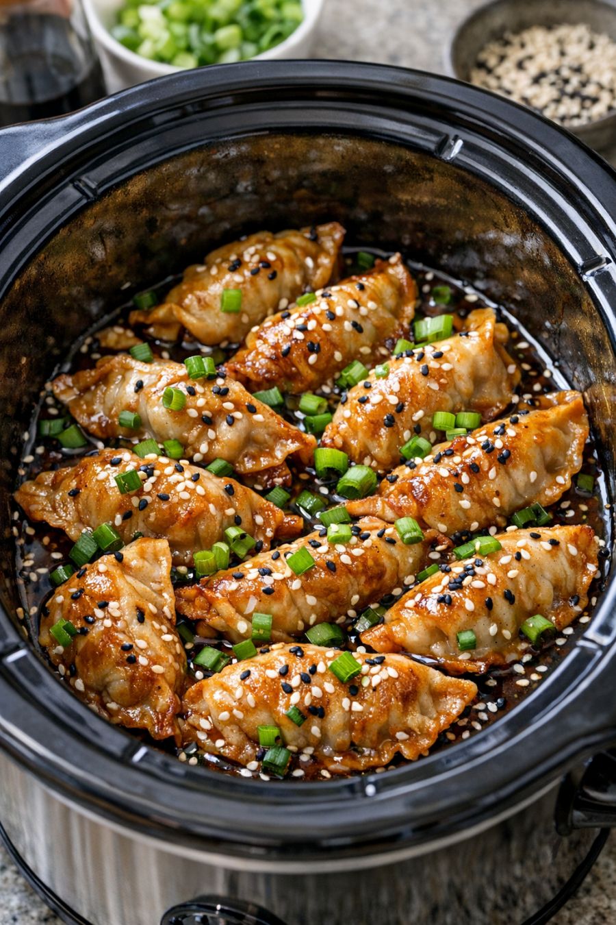 Cover the slow cooker with the lid and cook on LOW for 3 to 4 hours, or until the pot stickers are heated through, the wrappers are tender, and the sauce has thickened slightly. Avoid stirring during the first 2 hours so the pot stickers don’t break apart.