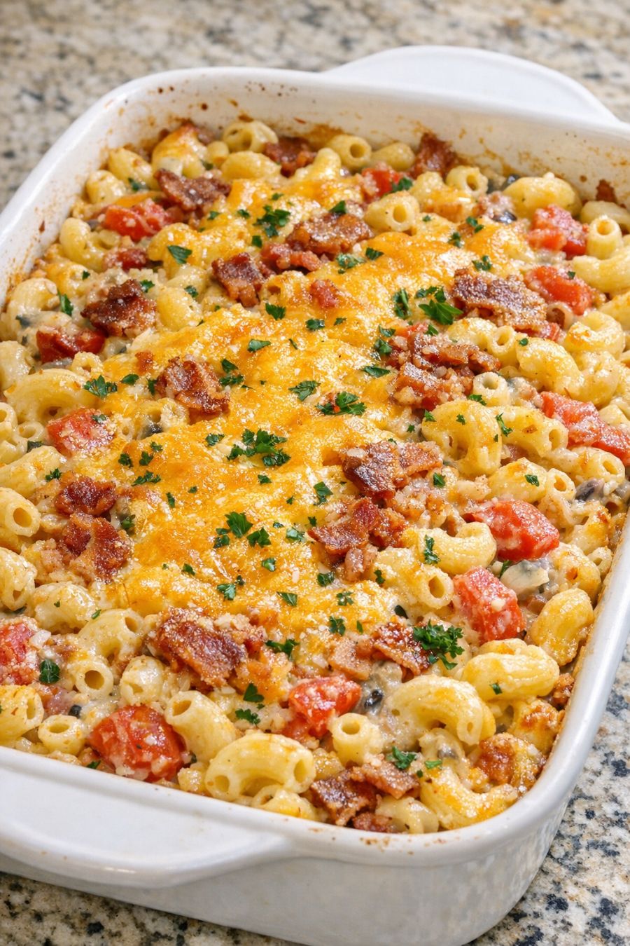 Sprinkle the remaining 1/2 cup shredded cheddar cheese evenly over the top of the pasta. Return the uncovered dish to the oven and bake for another 10–15 minutes, or until the cheese is melted, lightly golden in spots, and the pasta is fully tender when you bite a piece.