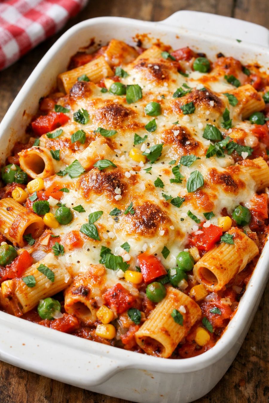This 5-ingredient oven classic rigatoni casserole is the kind of weeknight dinner that looks and tastes like you fussed all afternoon, but really comes together with a few pantry staples and one baking dish. You toss dry tube pasta straight into the pan with jarred sauce, frozen mixed vegetables, and a couple of fridge standbys, then let the oven do the rest. It’s cozy, colorful, and family-friendly—perfect for those nights when you want something homemade and comforting without hovering over the stove.