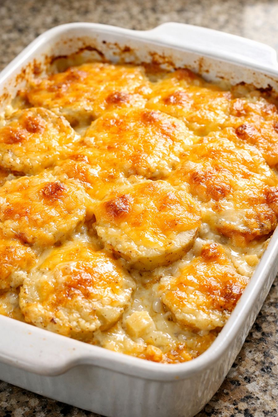 Let the dish rest for 5–10 minutes after baking so it can set slightly and cool down from lava-level hot. Scoop and serve straight from the baking dish. Expect people to go back for seconds and argue over the crispy, cheesy edges.