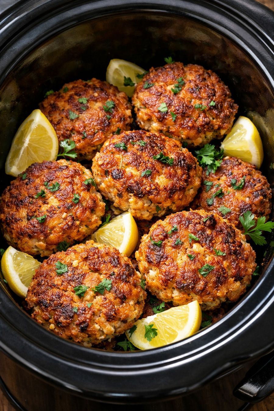 Serve these salmon patties hot, straight from the slow cooker, with lemon wedges and a quick side of steamed green beans or a crisp green salad to balance the richness. They’re excellent over buttered rice or mashed potatoes to soak up the savory juices. For a lighter option, tuck a patty into a toasted bun or pita with lettuce, tomato, and a spoonful of tartar sauce or plain yogurt. Leftovers are lovely flaked over mixed greens the next day with a mustardy vinaigrette.