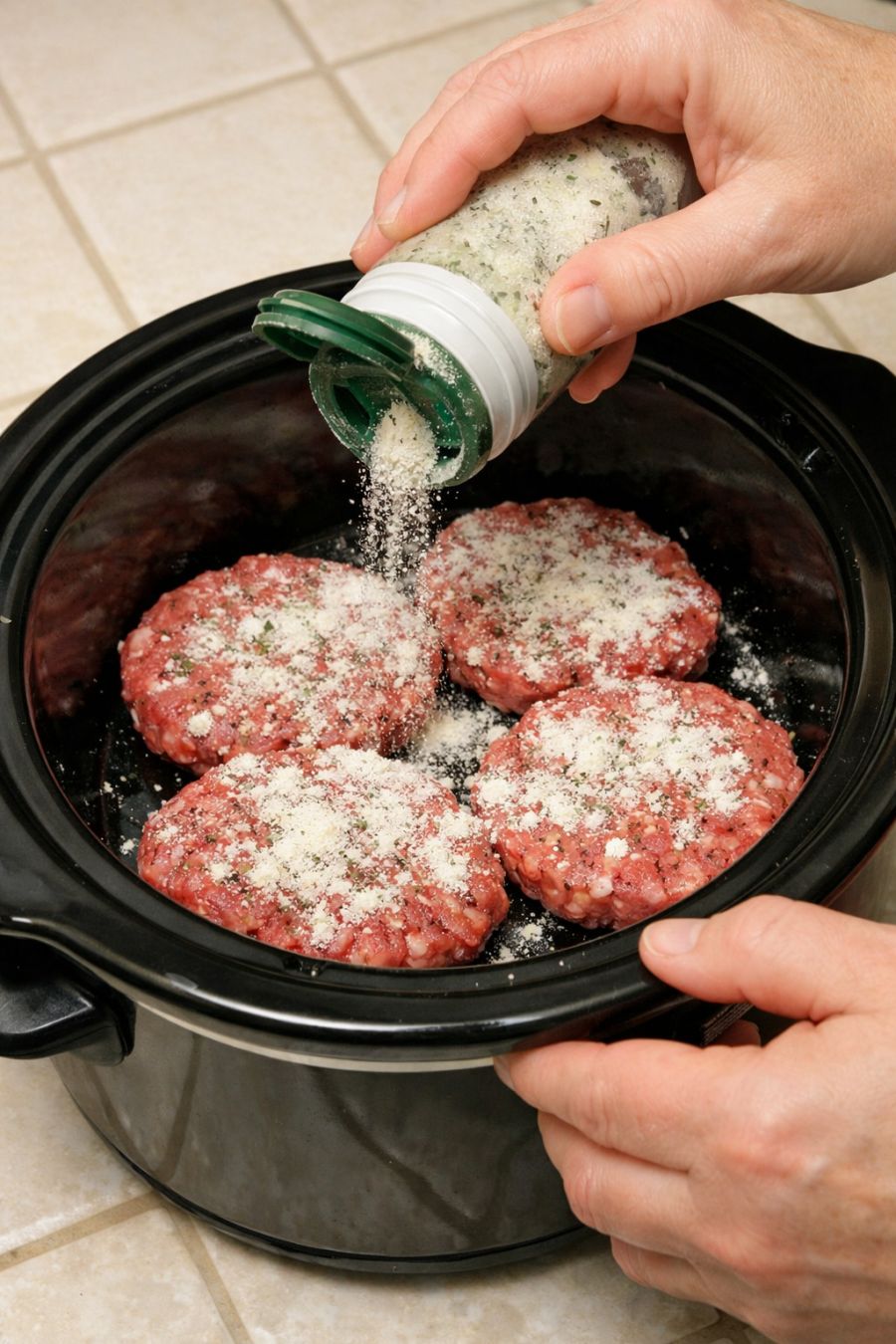 Drizzle ranch seasoning across beef patties, along with 2 ingredients, into slow cooker for a savory treat that disappears faster than anything else