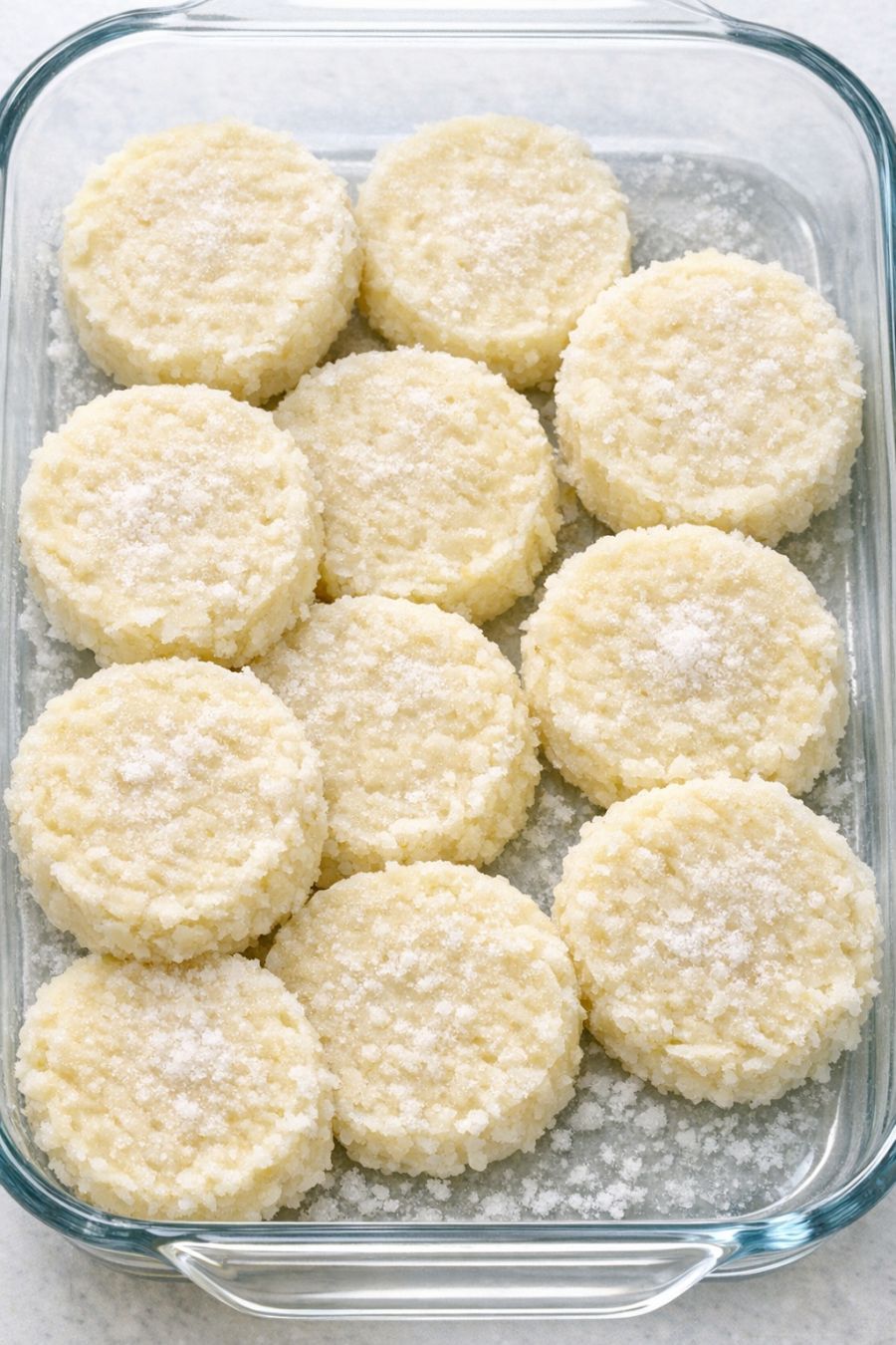 Scatter flaked canned salmon over raw diced red potatoes, combined with 2 more ingredients, into a glass baking dish for a hearty supper that's the one everyone asks for