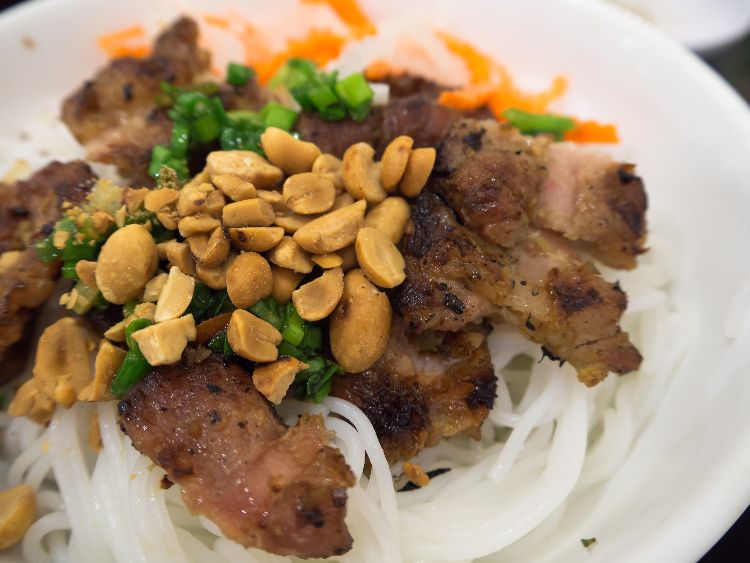 6. Serve with sauce on the side or poured on top. Garnish with chopped green onion and toasted peanuts.