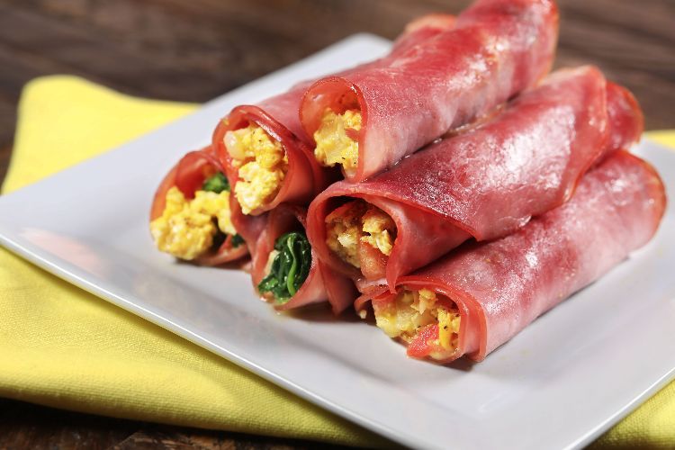 Low-carb ham, cheese and egg baked cups This recipe makes it a snap to prep a low-carb breakfast you can grab on your way out the door. The combination of cheese, egg and ham make it a tasty option, too. Get the full recipe