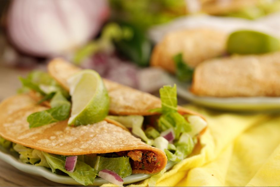 Vegan tacos with sun-dried tomato walnut crumbleIt can be a challenge to make really satisfying and flavorful vegan tacos without resorting to some form of beans, either refried or whole. The recipe below solves the problem with a super savory mix of sun-dried tomatoes, walnuts and spices. Add any taco toppings, such as vegan sour cream or cashew cream, guacamole or salsa. Get the full recipe
