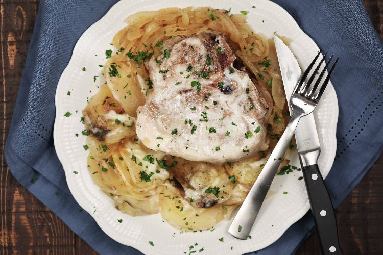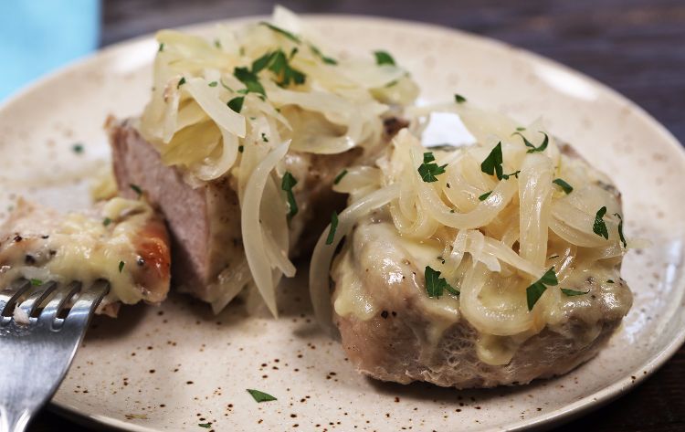 Slow cooker French onion soup pork chops