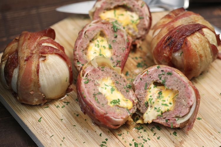 Slow cooker bacon-wrapped onion meatballs This is a fun recipe that your family will love making almost as much as eating. Bacon, onion and ham wrapped around cheese-stuffed meatballs — it might sound complicated, but it's far from it.