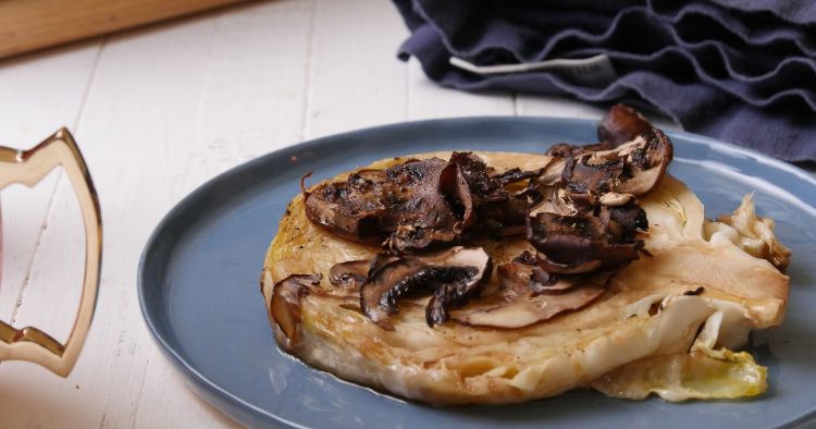 The balsamic adds some acidity to the cabbage complimenting it's earthy flavor. A good olive oil not only adds that fruity nutty flavor to the dish but also helps to lightly chard the cabbage to perfection. You can also add fresh sliced mushrooms to this dish to add some meaty flavor to the cabbage steaks. It's a great dish either way and way too easy to make.
