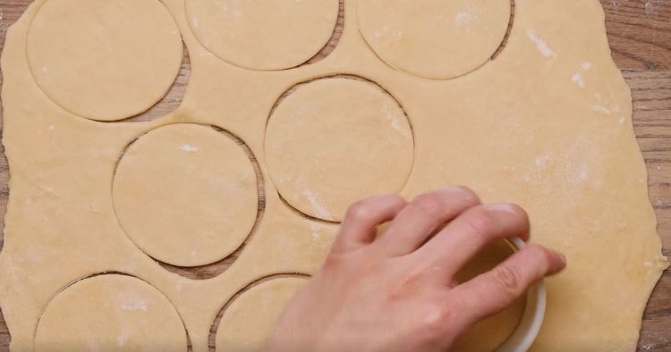 While perogie dough is not pasta dough, it still needs to be rolled thinly like pasta dough. Otherwise it will be chewy and rubbery, and totally unappetizing—not something you want in perogie dough. To keep that from happening, roll the dough out to 1/8" thick and your perogie dough will be thin and delicate; just like it's supposed to be. Then just use a cookie cutter or a cup to cut out circles for your individual perogies.