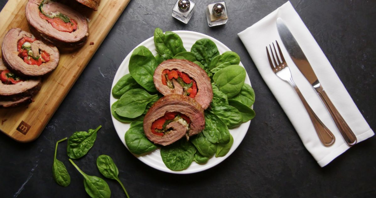Southern stuffed flank steakThere are few ways to make flank steak better. It's so hearty, delicious and just plain beefy that it's pretty good all on its own. But what if you didn't grill it up as you would a regular steak? What if instead, you pounded it flat, topped it with tons of delicious ingredients, and then rolled it all up to go in the oven for a quick bake? That would put a whole new delicious spin on it, and it's just what the recipe that follows does. Get the recipe