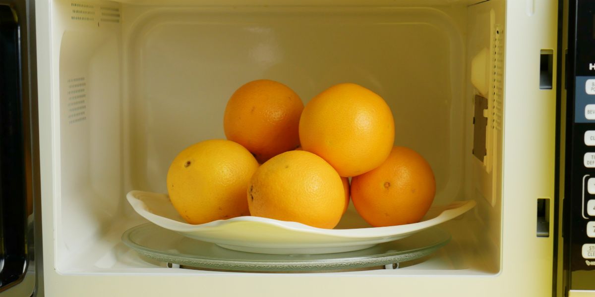 How to get more juice from your orangePlace oranges in the microwave for 20 seconds before squeezing them. Let them cool for about 60 seconds, then manually squeeze them or use a juicer. This tip applies to other citrus fruits as well, such as lemons and grapefruits.