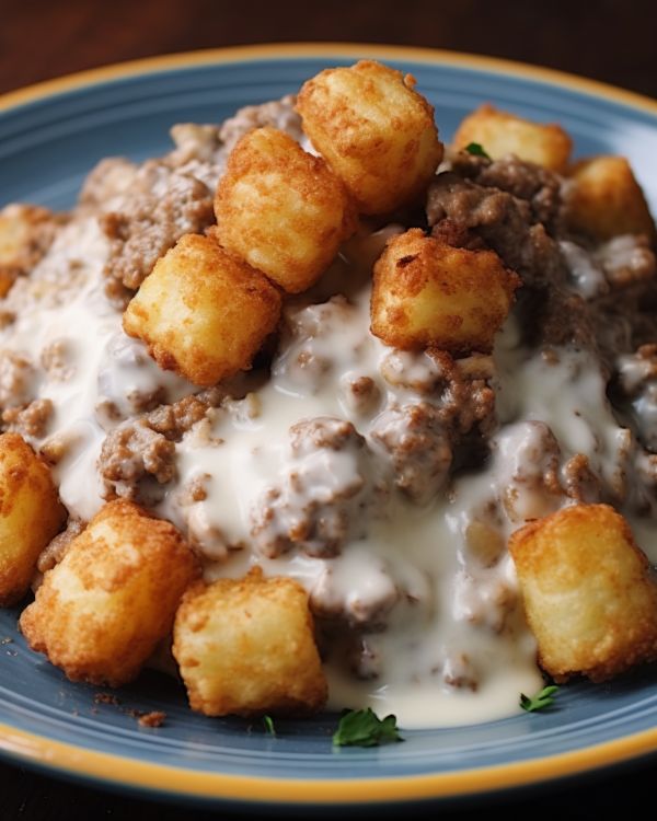 6. Bake for 15 minutes, then rotate dish and bake 10-20 more minutes until tater tots are crisp.