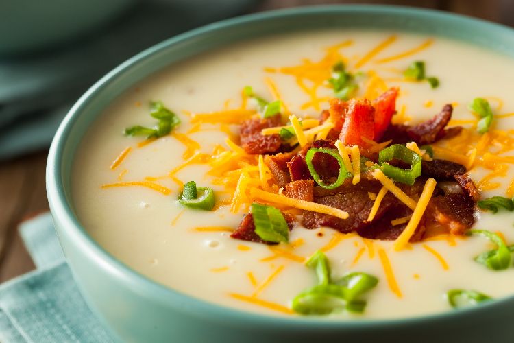 When thinking about comfort food, potato soup probably comes to mind. It's a guaranteed way to warm up a cold evening or rainy afternoon. This slow cooker recipe includes all the traditional baked potato flavors, including bacon, chives, and cheddar cheese.