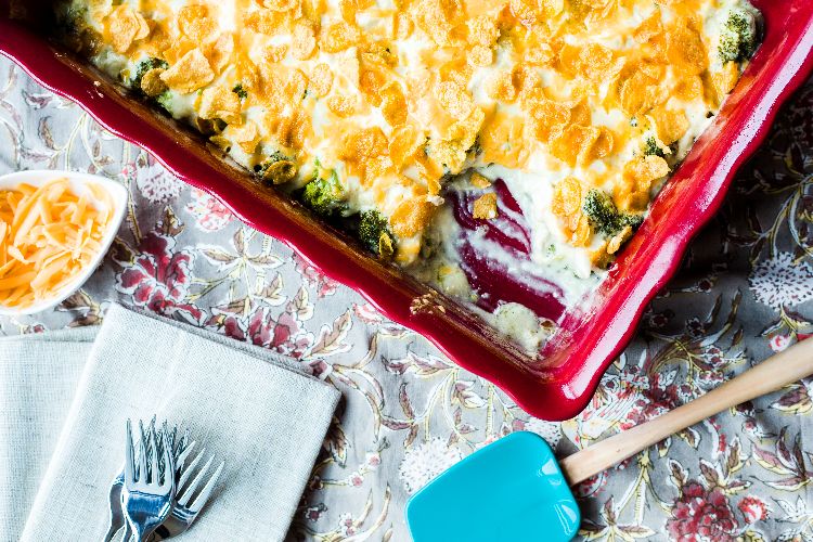 Cover the casserole and bake for 15 minutes, then remove the foil and bake for an additional 15 minutes, until bubbly.
