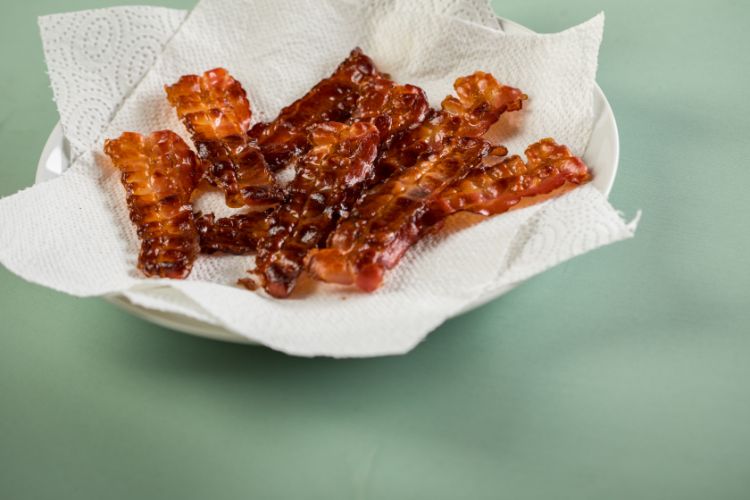 No, you don't have to let the bacon sit in a colander in the sink when it's done cooking. But you do have to find a way to remove some of that fat. Otherwise, when you put it on a plate, a pool of grease will start to form under it, making your bacon unpalatable. A plate lined with a paper towel, newspaper or even a paper bag will all absorb the grease, so the bacon is nice and crisp when it's time to serve or use. But remember to also blot the top of the bacon with a separate piece of towel or similar item — there's grease there, too.