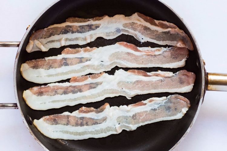 There are many dishes that require you to heat the pan before you put anything — including oil — inside. But the opposite is true for bacon. If you heat the pan before you put the bacon in, chances are the meat will start cooking right away and burn before the fat has had a chance to render. And then you end up with fatty bacon that's difficult to even chew. Instead, place strips of bacon flat in a cold pan, and then turn the heat on. As it heats, the fat will start to render before the meat starts to cook, and it will all be done to perfection at the same time.