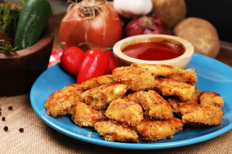 Using tongs, dip each boneless buffalo bite into the heated hot sauce.