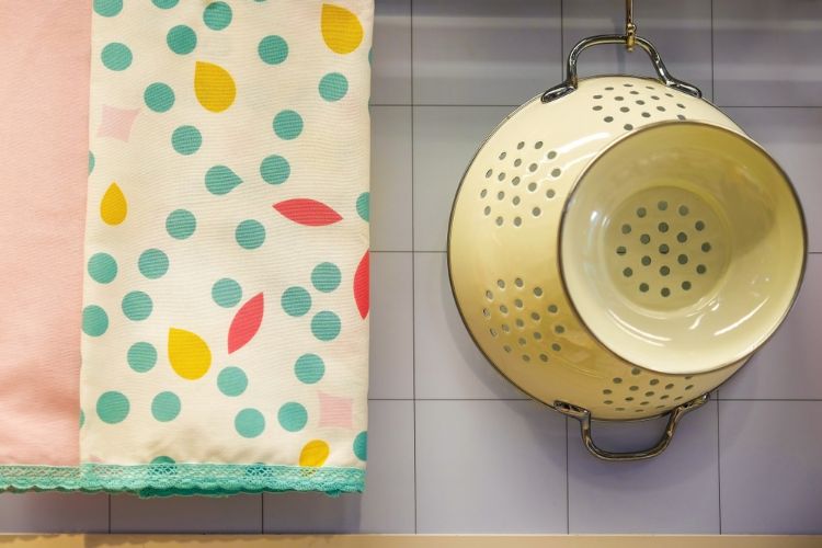 1. Colanders If you have a limited amount of counter space in your kitchen and happen to have an extra colander or two on hand, then you're in luck. Remove the legs from your colanders and attach a few lengths of chain to the handles. You can now hang them from the underside of a shelf or cabinet and store smaller kitchen items in them.