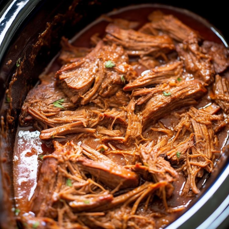 3. Cover the slow cooker with the lid and cook on low heat for 8-10 hours, or on high heat for 4-6 hours. The meat should become tender and easily pull apart with a fork.