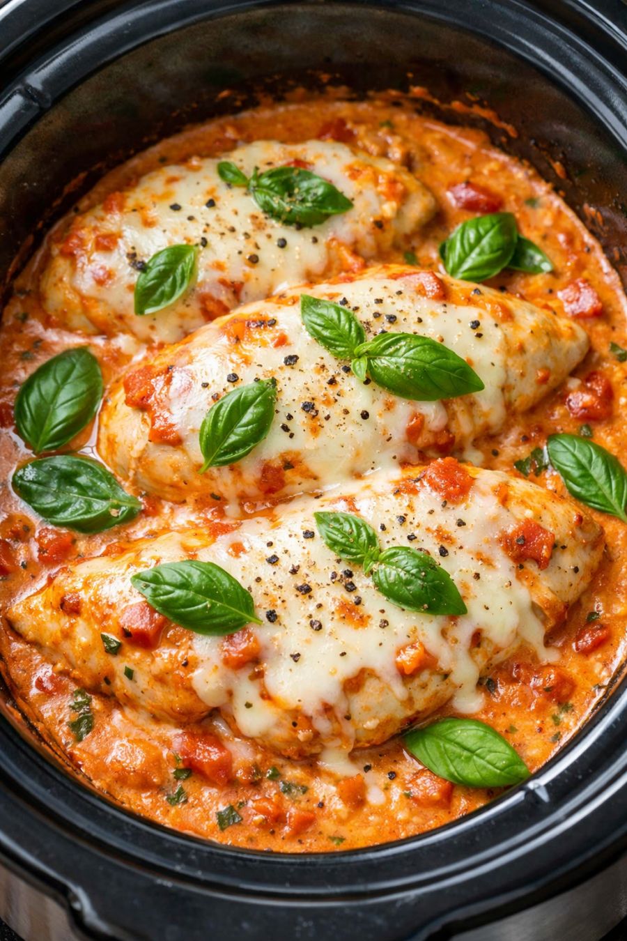 Slow Cooker Creamy Tomato Basil ChickenServings: 4