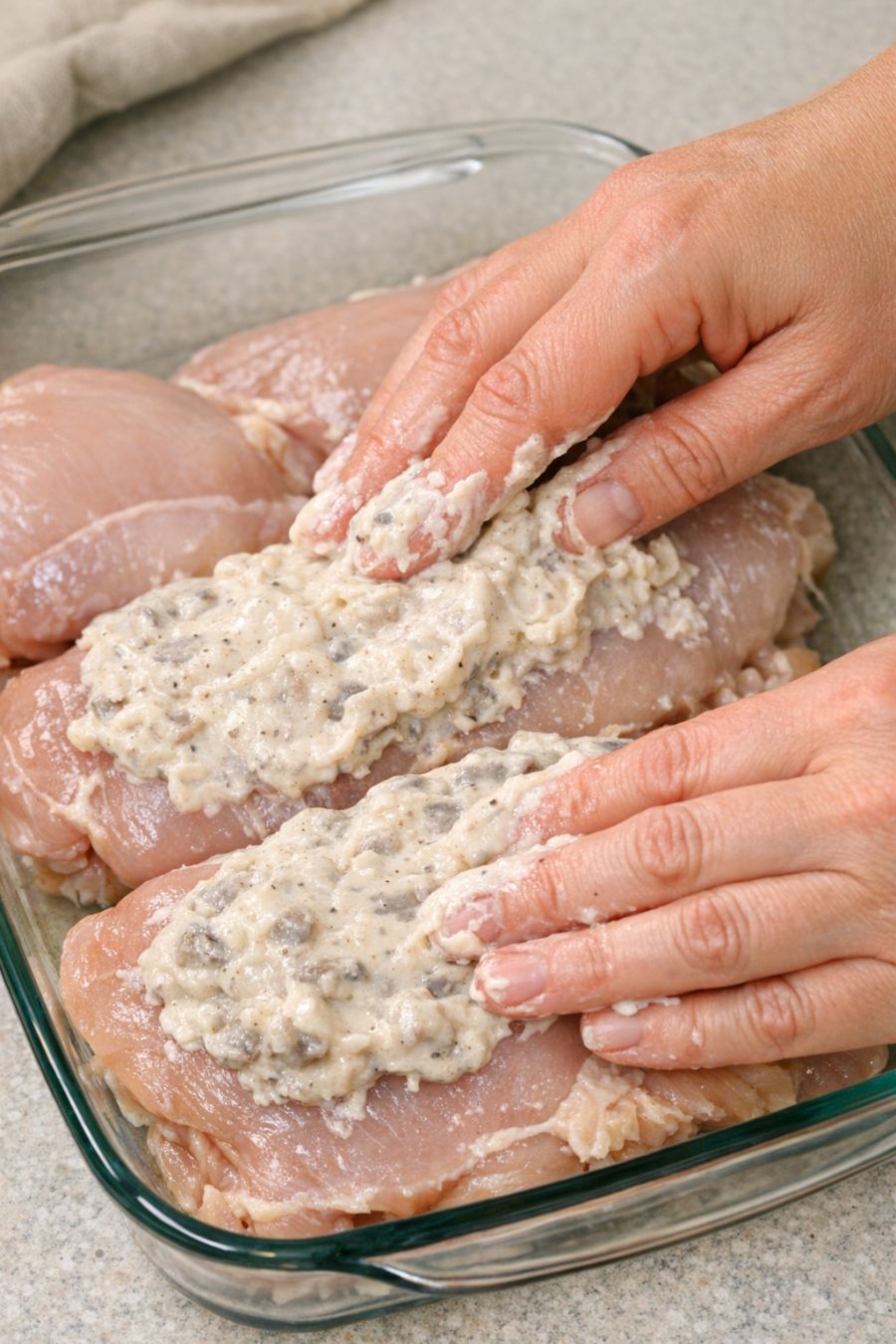 Spread this 1 savory mixture over raw chicken breasts into a glass baking dish for a weeknight dinner that doesn’t feel like a shortcut