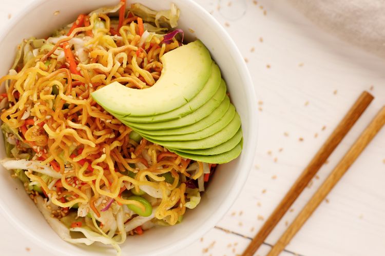 This Asian-style coleslaw gets even more fantastic crunch from the addition of dehydrated ramen noodles. Roasted in the oven, the noodles become caramelized, adding tons of flavor to this salad. As a result, the recipe below isn't just a side salad; it's a complete vegetarian meal.