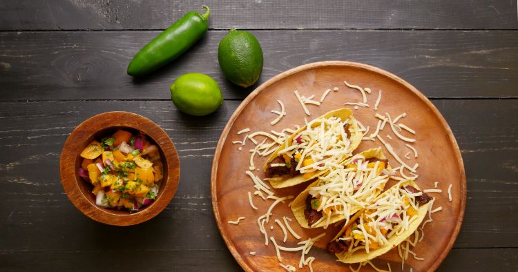 Add the steak, a generous portion of the tomato salsa and a sprinkling of shredded cheese.