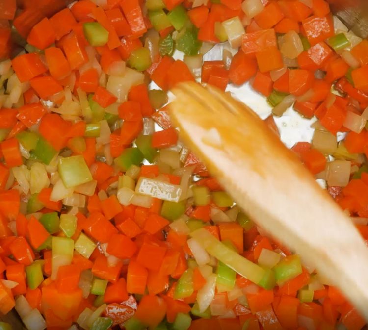 3. Cook, stirring frequently, until the vegetables begin to soften, about 4 minutes.