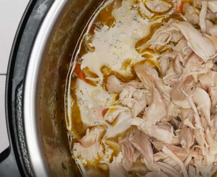 8. Select the sauté function and add the noodles to the pot. Cook uncovered for about 5 minutes, until the noodles are tender.