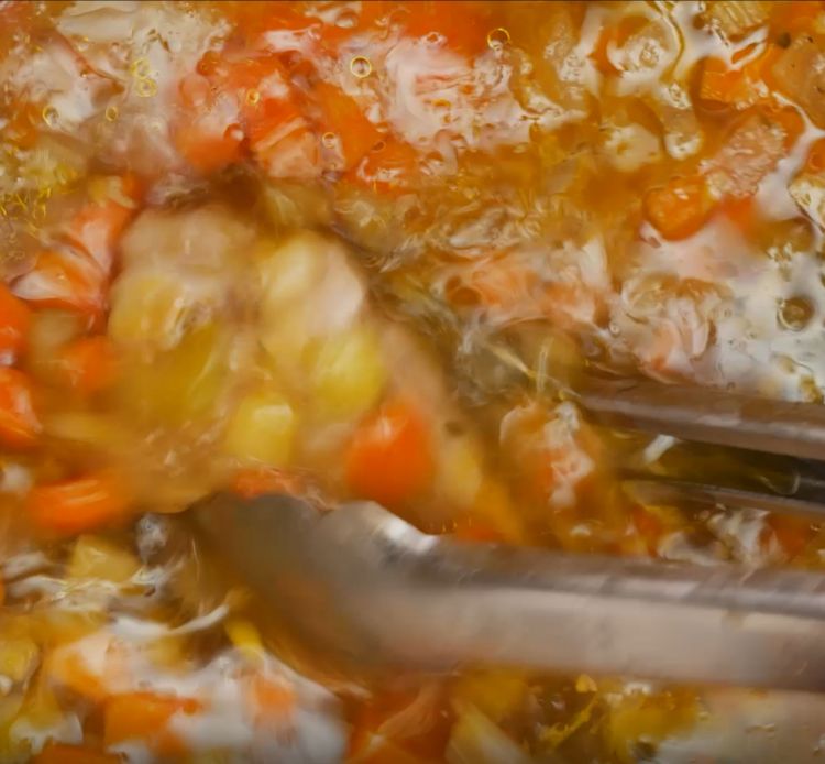 10. Add the shredded chicken to the soup, along with the lemon juice and parsley.