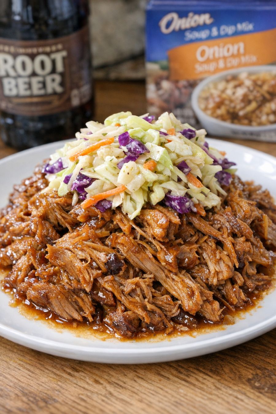 Serve this tender root beer pork piled onto soft sandwich buns with a scoop of coleslaw on top or on the side. It’s also wonderful spooned over mashed potatoes, buttered egg noodles, or plain white rice to soak up all the sweet-savory juices. Add a simple green vegetable—like steamed green beans, roasted carrots, or a tossed salad—to round things out. For a real crowd-pleaser, set the pork out on a platter with slider buns, pickles, and a bowl of extra cooking juices so everyone can build their own sandwiches.