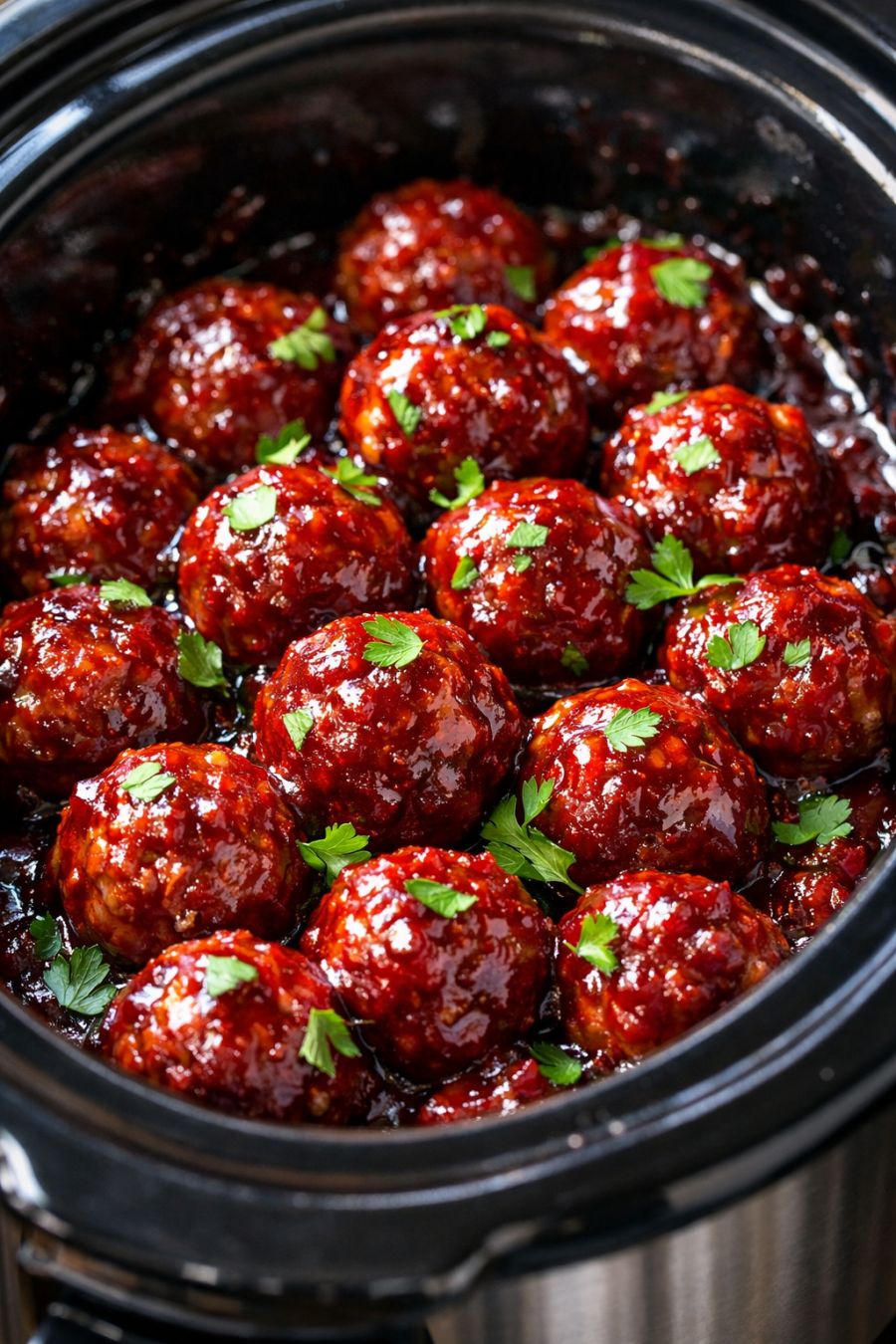 Slow Cooker 3-Ingredient Amish Cranberry Meatballs