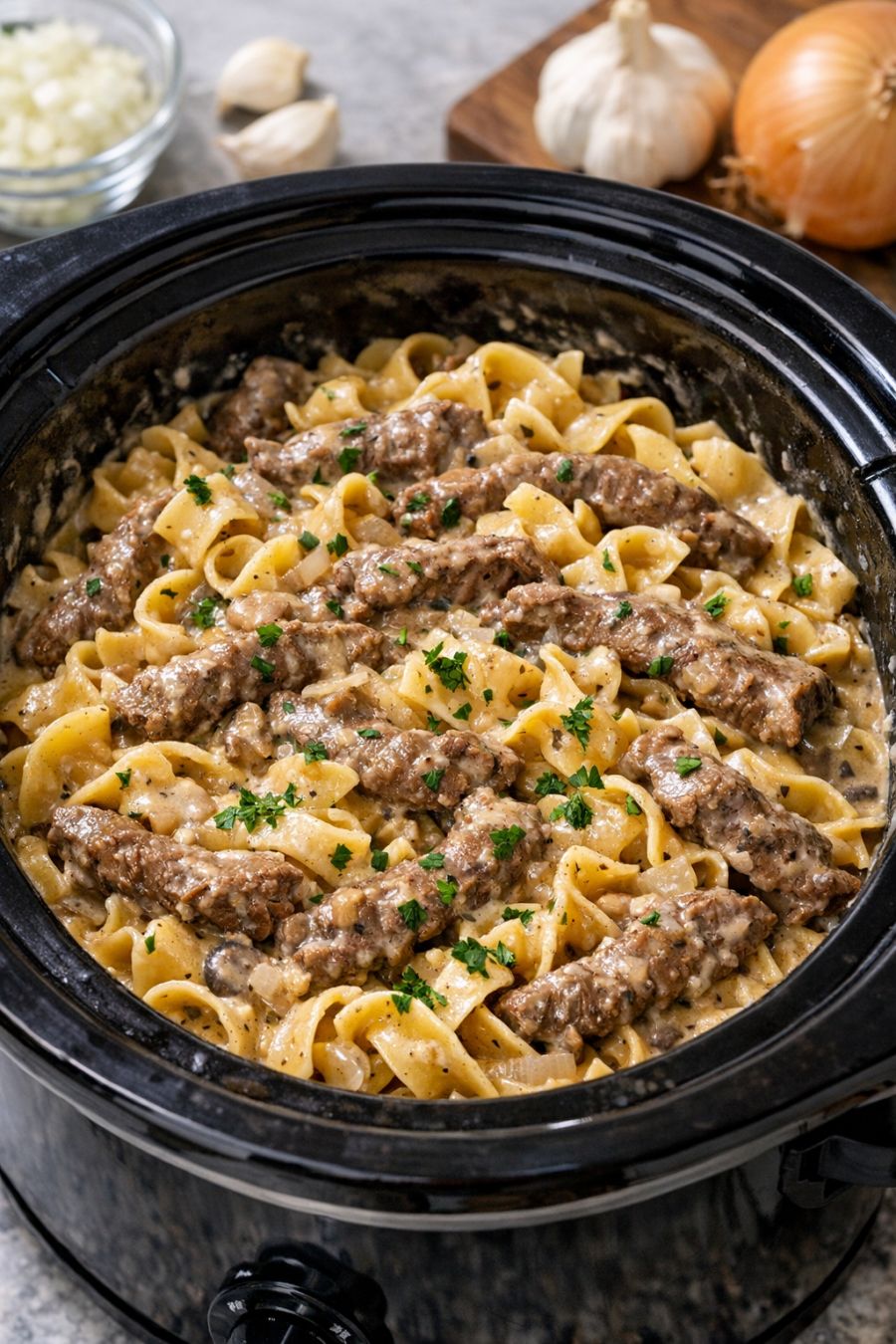 Slow Cooker 5-Ingredient Amish Beef Stroganoff