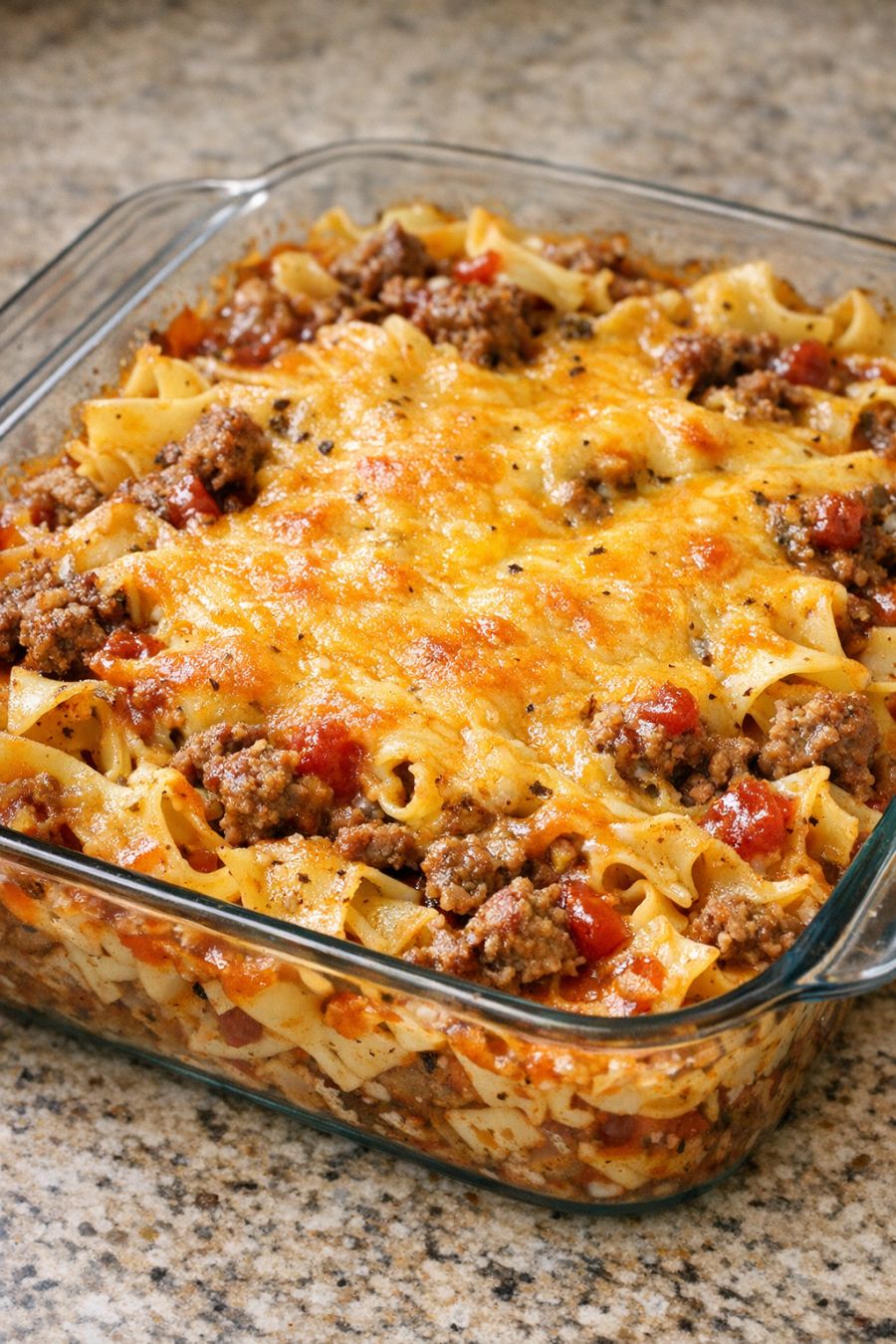 This little oven-baked Amish-style meatloaf noodle casserole is the kind of humble, five-ingredient supper that has quietly fed farm families for generations. It starts with a bed of uncooked egg noodles right in a glass baking dish, then you pour a simple ketchup mixture and crumbled meatloaf over the top and let the oven do the rest. It reminds me of the way my mother stretched yesterday’s meatloaf into a whole new meal, turning leftovers and pantry staples into something comforting that folks always come back to. The bottled ketchup gives it that familiar sweet-tangy glaze we all grew up with, and the noodles soak up every bit of flavor as they bake.