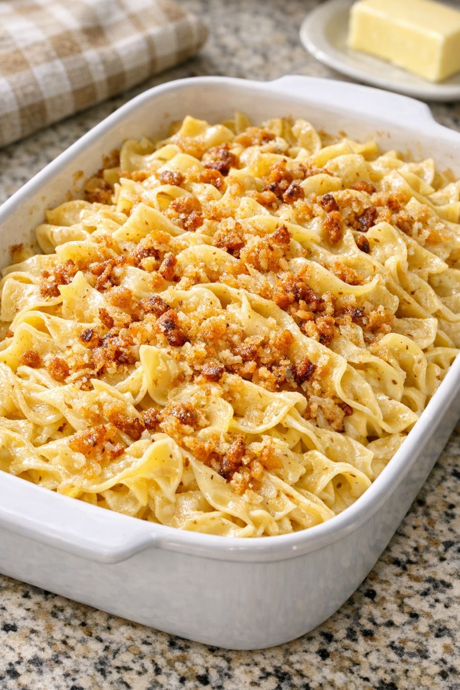 For picky eaters, keep the base recipe as-is and serve any extras on the side so they can choose what to add. To make it more of a full meal, stir in 1–2 cups of cooked, shredded chicken, ham, or browned ground beef after baking, then pop it back in the oven for 5–10 minutes to warm through. If you’d like a little color and veggies, you can scatter 1–2 cups of frozen peas or mixed vegetables over the uncooked noodles before pouring on the soup mixture; they’ll cook right along with the noodles. For extra richness, swap half of the milk for heavy cream. If you prefer a bit of a crust on top, remove the foil at the end, sprinkle with crushed butter crackers or plain bread crumbs mixed with a little melted butter, and bake until golden. To lighten it up slightly, use 2% milk and reduce the butter to 1/4 cup; the texture will be a bit less rich but still creamy. Leftovers reheat well with a splash of milk to loosen the sauce, making it a good make-ahead option for busy school nights.