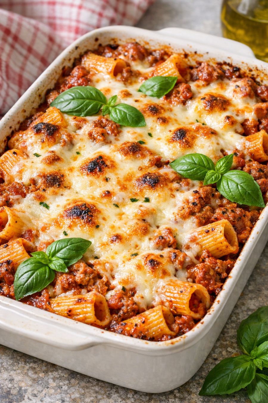 Serve this rigatoni bake straight from the oven with a simple green salad and some garlic bread or buttered toast to scoop up the extra sauce. A side of steamed green beans or corn fits right in with that farmhouse feel. For family nights, I like to set out a little bowl of grated Parmesan and red pepper flakes so everyone can dress up their own plate just the way they like it.