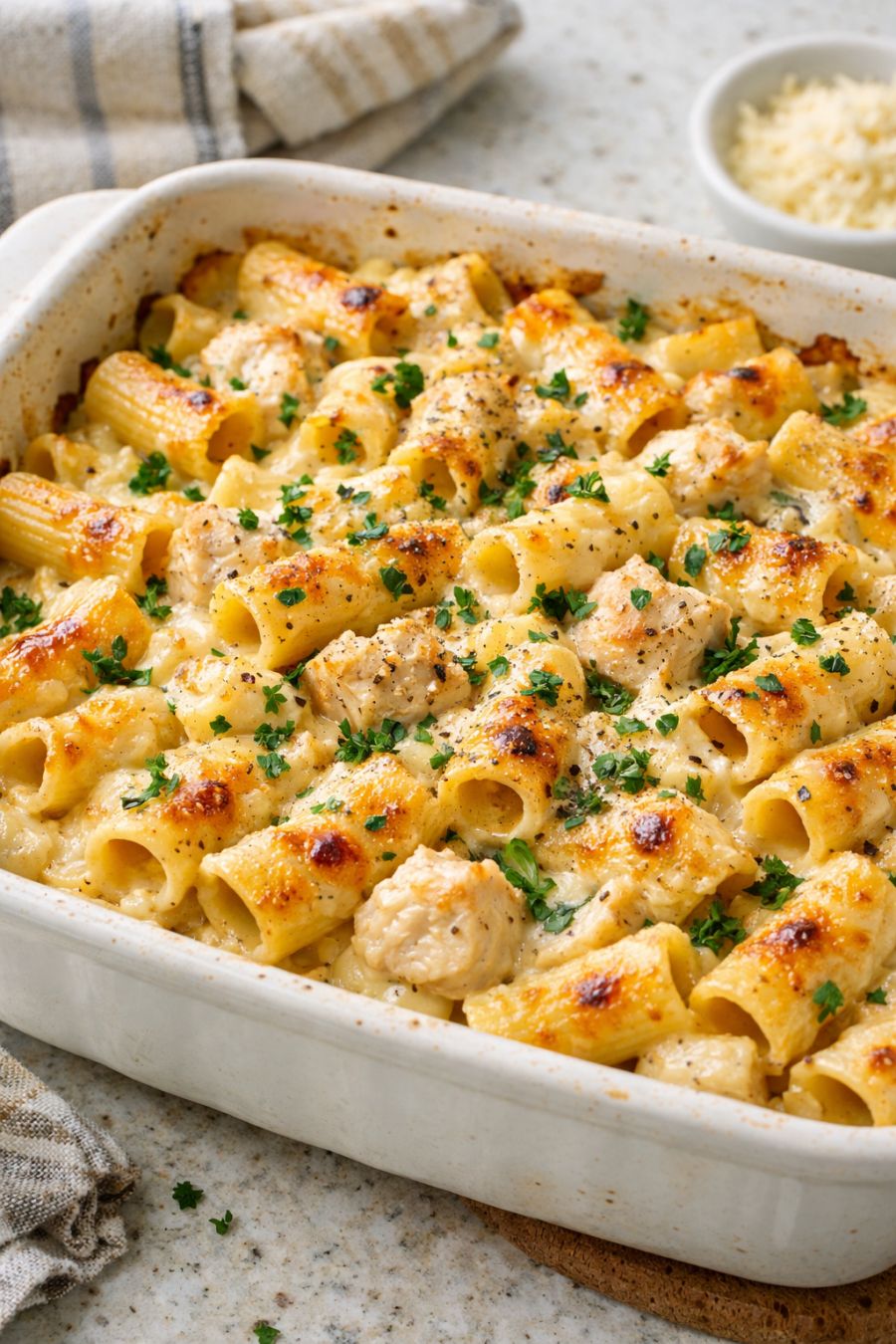 4-Ingredient Amish Farmhouse Chicken Rigatoni Bake