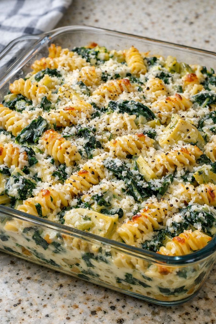 Oven-Baked 6-Ingredient Creamy Spinach Artichoke Rotini
